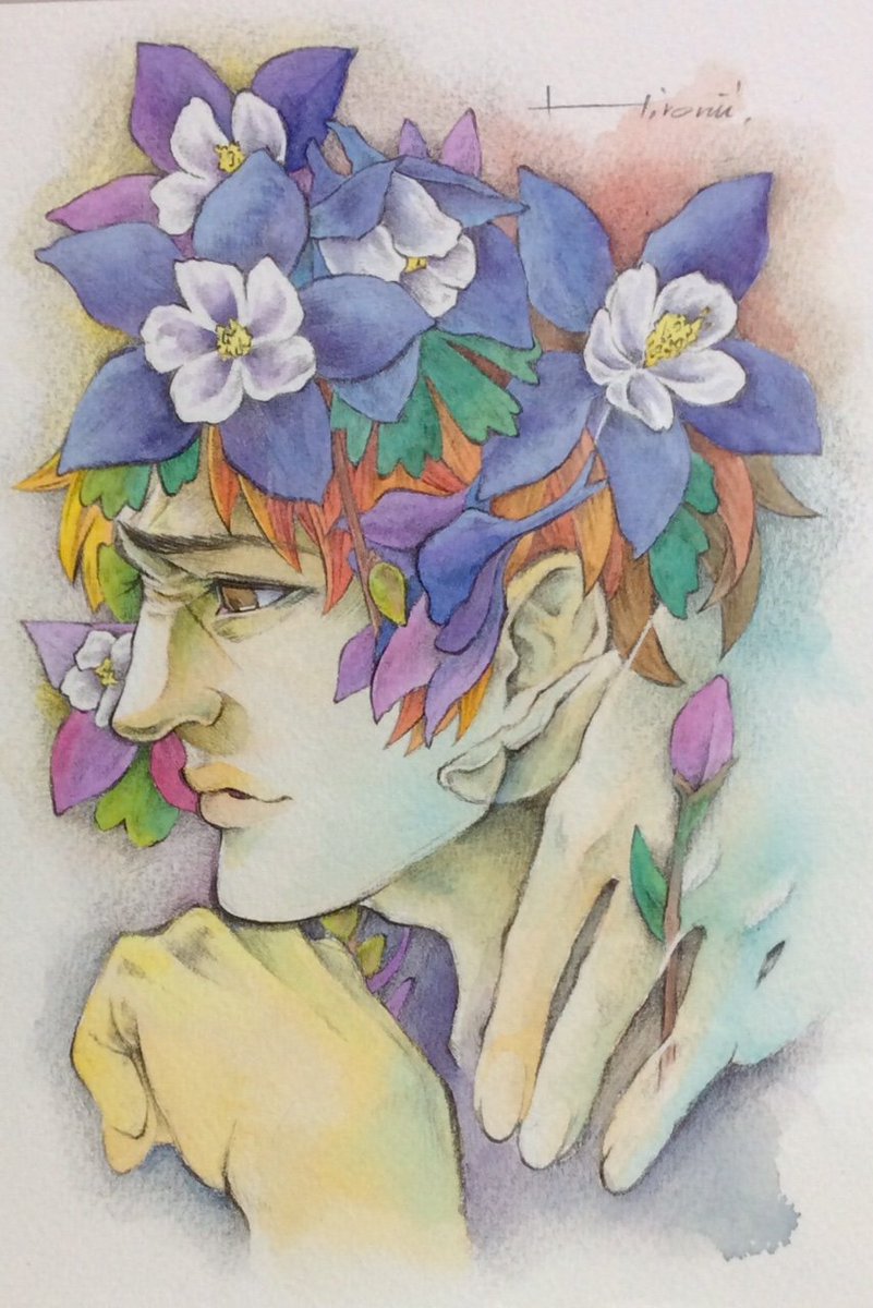 Hiro兄 妖怪 ハロウィン 展示10月23日 土 より Twitter પર オダマキ Columbine Flower 愚か者 勝利の誓い 心配 愚劣 オリジナルイラスト イラスト 絵 男性画 水彩画 透明水彩 花言葉 オダマキ Drawing Illustration Watercolor